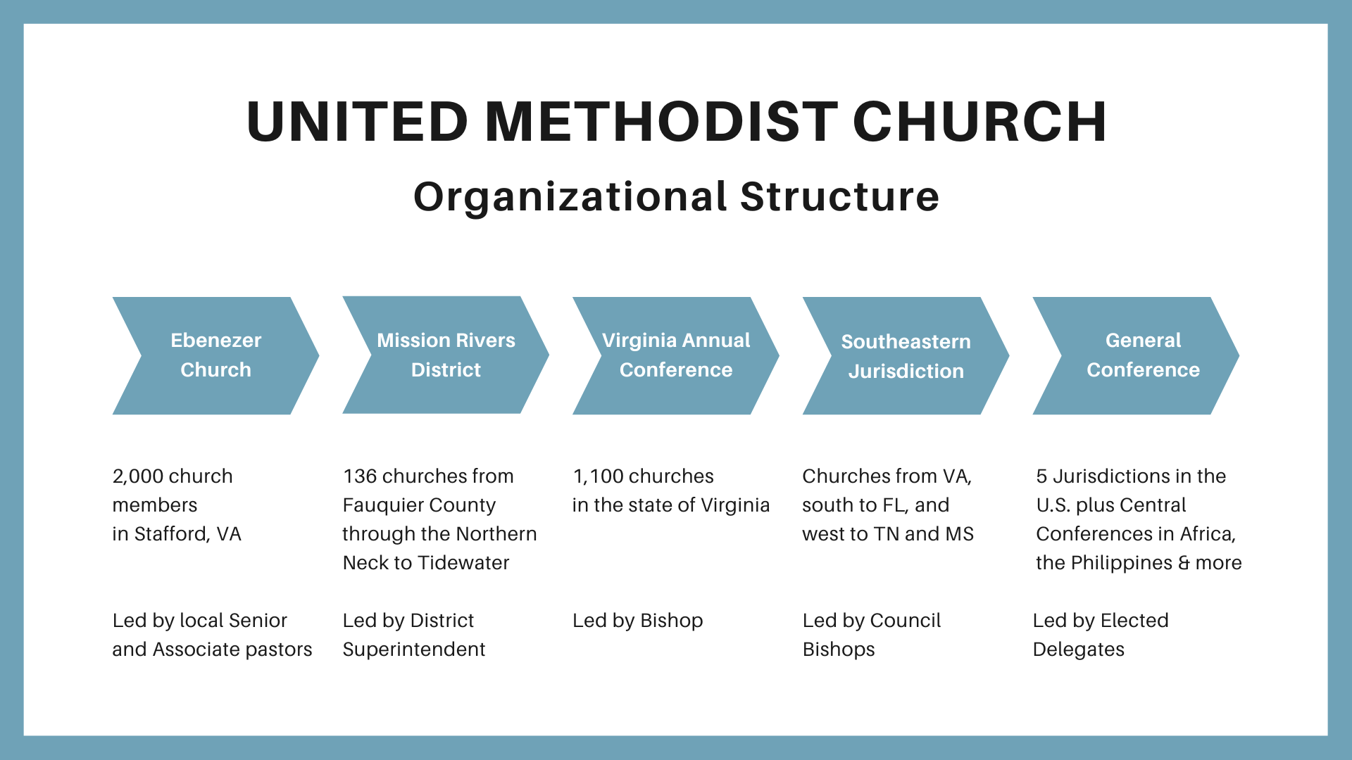 Please click the button below to view a chart of the United Methodist Church organizational structure.